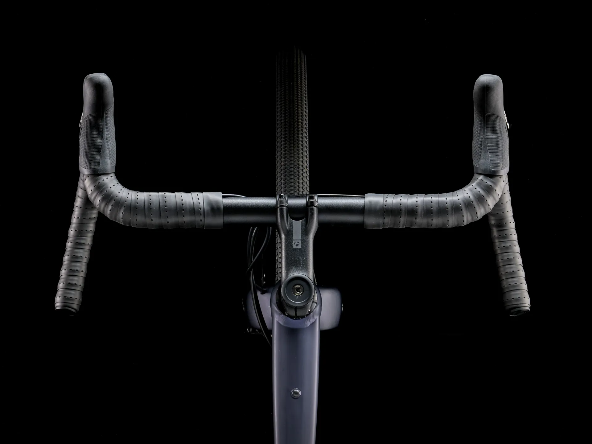 Size 49: Bontrager Elite Gravel, 38cm width; Size 52: Bontrager Elite Gravel, 40cm width; Size 54, 56: Bontrager Elite Gravel, 42cm width; Size 58, 61: Bontrager Elite Gravel, 44cm width