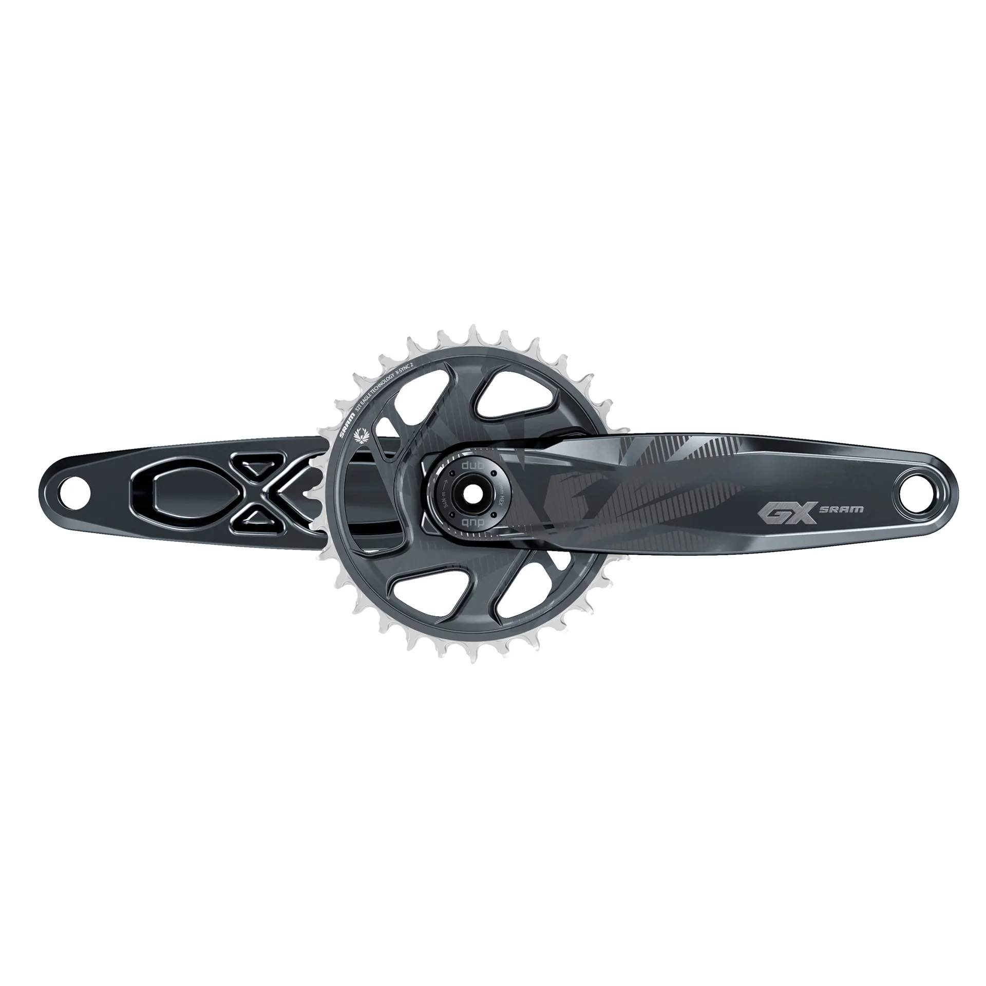 Some riders test their limits more than others. For these riders, the GX Eagle Dub crankset allows them to go all in, every day they ride. The best aluminum crankset we make, engineered to deliver consistent performance every ride. Featuring the X-Sync 2 tooth profile chainring for complete chain control.
