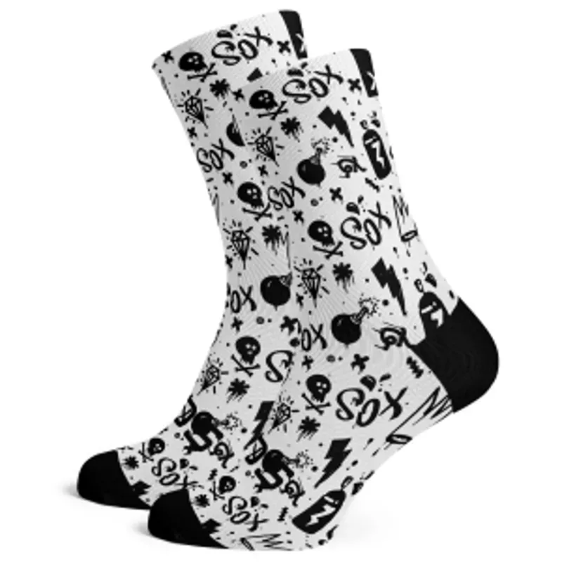 Sox Footwear Doodle White Mono-Chrome Premium Crew Socks WHITE/BLACK